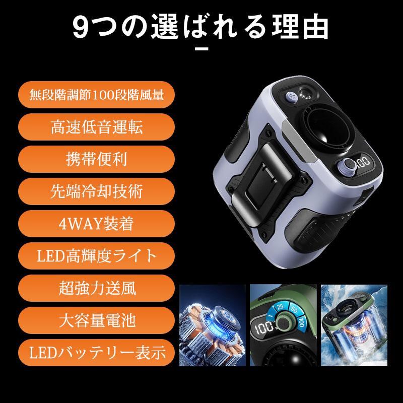 風量モードの強弱は100段階に切替えるので状況によって快適に調節できます。服の中を循環する風が汗を蒸発させ、体を涼しく体温の上昇を抑えます。